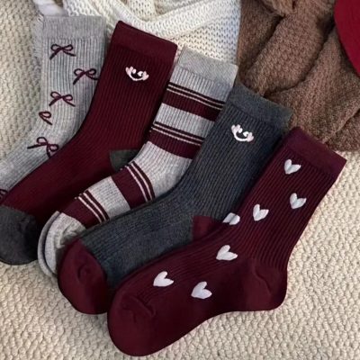 جوراب کبریتی طرح قلب و پاپییون سایز ۳6_42 جنس نخ پنبه تولید ایران
