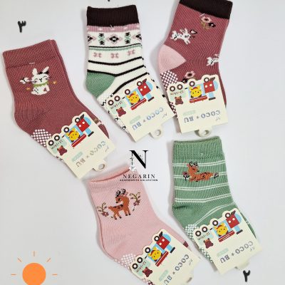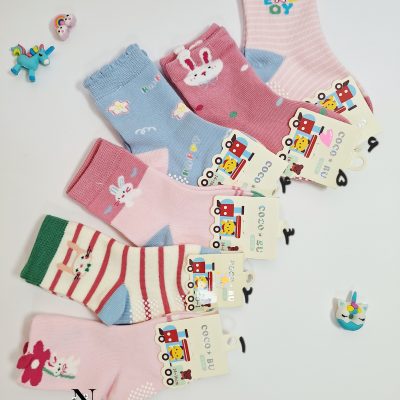 جوراب برند کوکوبیو سایز 0 تا 1 سال جنس نخ پنبه کفی استپ دار وارداتی چین